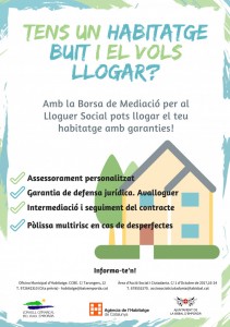 L’Oficina Municipal d’Habitatge gestiona el servei de la Borsa de Mediació per al Lloguer Social, i en aquest sentit, les persones propietàries que lloguin el seu habitatge a través de les Borsa de Mediació, a més de poder accedir als ajuts, hi poden trobar diferents avantatges: garantia de defensa jurídica, tramitació i seguiment del contracte, pòlissa multirisc en cas de desperfectes en l'habitatge, o el control del bon ús dels habitatges llogats, entre d’altres avantatges.