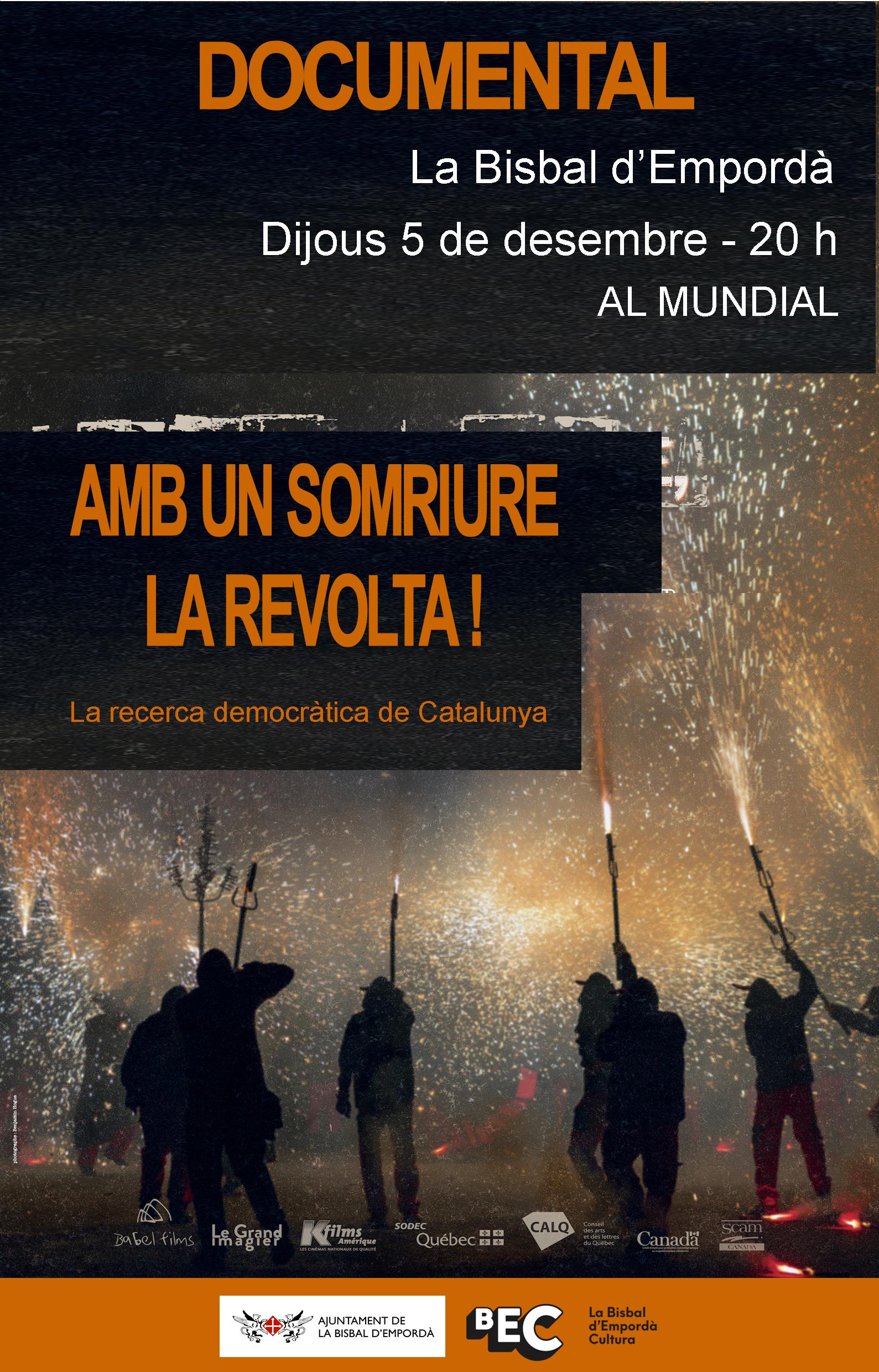 (Amb un somriure, la revolució), la primera producció internacional sobre l’1 d’octubre i el seu context. El director és el quebequès Alexandre Chartrand, que ja va signar un documental sobre el 9-N (‘Le peuple interdit’), i que ara retrata els fets de setembre i octubre de 2017. Amb la seva càmera va captar la jornada del referèndum i va recollir el testimoni d’activistes de base i protagonistes anònims, així com líders polítics com Carles Puigdemont, Mireia Boya, Sergi López, Jordi Cuixart, Quim Arrufat o Lluís Llach. El documental, inspirat pel títol d’una de les seves cançons, abona la idea de la ‘Revolució dels somriures’ per explicar com es va combatre des del sobiranisme l’oposició de l’Estat a la celebració de l’1-0.