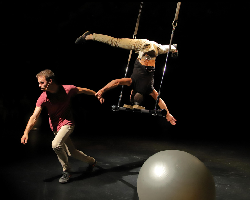 Acrobàcia amb una pilota, trapezi Washington, clown, dansa i música son alguns dels ingredients d’aquest remolí d’humor i poesia per a petits i grans.