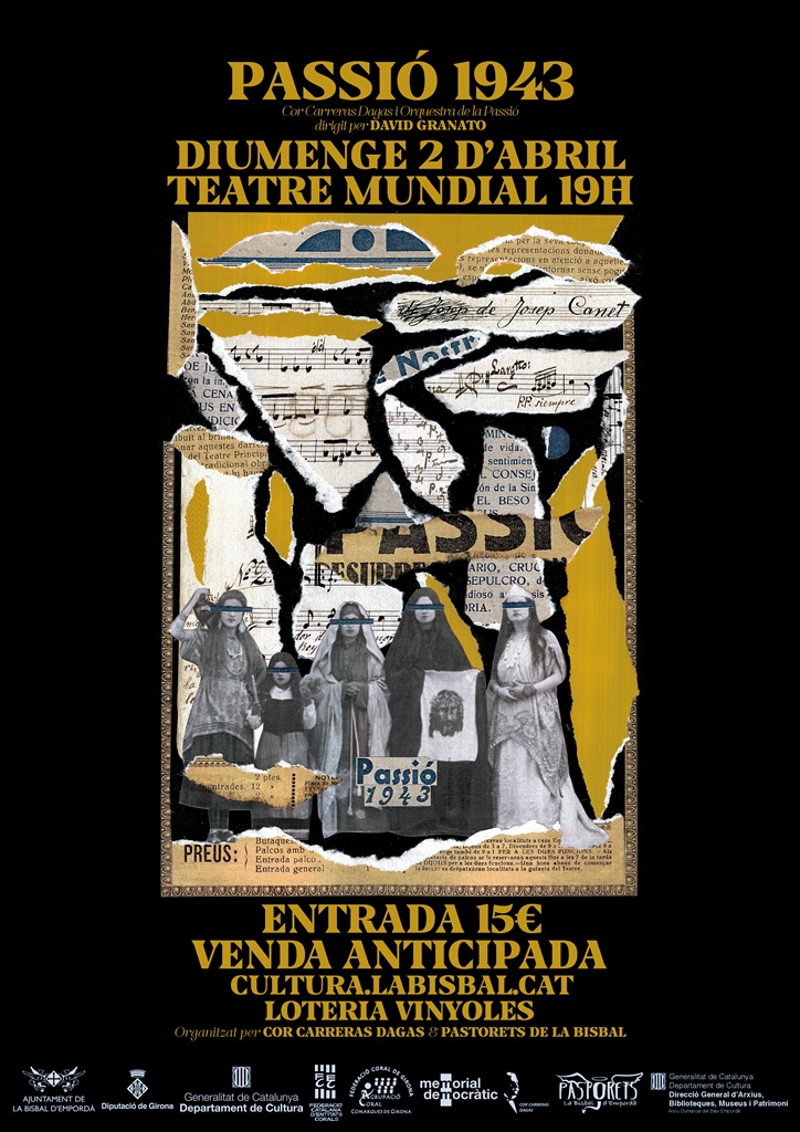 "Som el 14 de març de 1943. Després de 12 anys i una guerra civil, uns quants bisbalencs i bisbalenques estem a punt de recuperar la Passió de la Bisbal. Són les 3 de la tarda, falta una hora per l’estrena i s’estan venent les últimes entrades..." Però els hi van prohibir! Us ho explicarem.